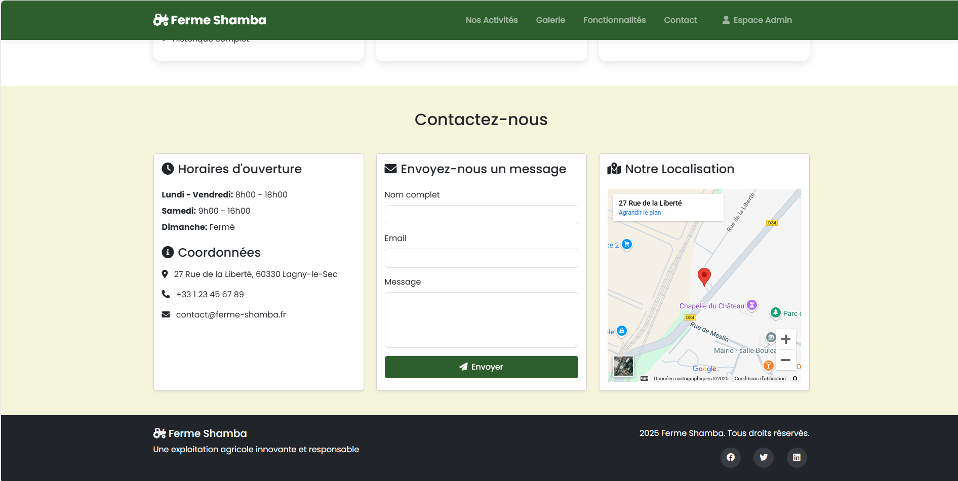 Présentation en détail du projet Ferme Shamba avec les technologies utilisées.