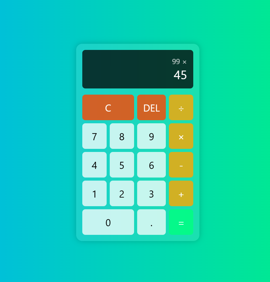 Retour aux projetsDéveloppement d'une calculatrice interactive, interface intuitive, design moderne, opérations de base (addition, soustraction, multiplication, division) et fonctionnalités avancées (suppression, remise à zéro).